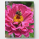 mignonne petite bourde abeille profiter d'une journée au soleil sur une zinnia rose