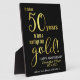 Un design fabuleux pour un 50e anniversaire de mariage sur mesure. Ce design noir et or est une façon magnifique d'envoyer un message sincère pour un 50e anniversaire de mariage. La typographie dorée indique "Il faut 50 ans pour transformer un mariage en or". Un design personnalisé noir et or élégant qu'ils vont sûrement adorer.