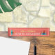 Une plaque de bureau en corail avec deux piles de livres et une pomme rouge conçue pour les bibliothécaires scolaires. © ArianeC Illustrations-Tous droits réservés