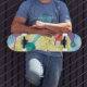 Plateforme de skateboard avec une illustration moderne et colorée !