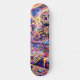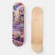 Un plateau de skateboard psychédélique saisissant présentant un crâne surréaliste fixant un miroir déformé, révélant un reflet chaotique imprégné de pilules. Ce design mélange des couleurs néon psychédéliques avec des thèmes d'horreur sombre, symbolisant le conflit intérieur, l'illusion et l'introspection.