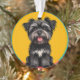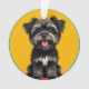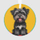 A cute illustrated terrier puppy sits on a pink surface, set against a teal backdrop with a bold yellow circle. The friendly, cartoon style highlights charm, energy, and playful appeal for pet art lovers.