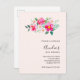 Invitation d'anniversaire avec une image d'aquarelle fantaisiste. Un bel agencement fleuri aux couleurs rose vif et rose pastel niché parmi des feuilles et des sprigs verts.