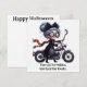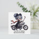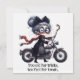 Full Throttle & Fright - Granny’s Halloween Dash Carte de vacances Un aîné tourmenté en éffrayante saison avec style, saisissant sa moto vintage d’une main et une canne tordue de l’autre. Ses lunettes surdimensionnées, son foulard flottant et son petit pain volumineux couronné d'un arc noir donnent du flair à son ensemble gothique. Entourée de chauves-souris et d’attitude, elle est un mélange fantasque de malice, de mystère et de magie motorisée, preuve que Halloween appartient aux audacieux.