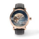 Montre vintage en or rose avec bracelet marron