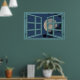 Pleine lune Vert 6 Volet Ouvrir la fenêtre Poster