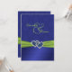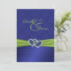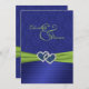 Ajoutez une certaine étincelle à votre mariage ou célébration spéciale avec ce bleu royal d'invitation et invitation verte de mariage damassé avec le REGARD plissé et un vert IMPRIMÉ SUR le ruban et une paire de parties scintillantes bleues de FAUX et les coeurs jointifs par bijou de diamant là-dessus, montrée ici sur le papier de base. Il y a un secteur avant de monogramme que vous pouvez changer pour adapter à vos besoins, ou l'enlèvent entièrement si vous préférez cela. Tout le texte est personnalisable et ainsi est les choix de papier. Si vous avez besoin de n'importe quels autres articles dans cette même conception, des articles assortis existants sont montrés ci-dessous.