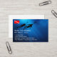 Cool plongée pittoresque thème de plongée cartes de visite avec l'image d'un couple nageant sous l'eau en tenue et l'océan en toile de fond avec disposition simple vous pouvez customiser en ligne dans un modèle en ligne. Conçu pour un club de sports nautiques, des cours de plongée sous-marine ou un tourisme écologique.