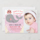 Nautical Sea Whale fête d'anniversaire à thème. Ajustez le texte pour en faire le vôtre. Main Drawn Cute, adorable illustration de baleine. Bleu clair et blanc, rayé arrière - plan composent cette jolie conception d'invitation fête d'anniversaire. Premier anniversaire. Fête des filles. Thème rose clair. modèle carte photo.