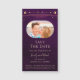 Mystical Rainbow Deep Plum Sun Moon Star Space Save The Dates Magnet dispose d'un arc-en-ciel coloré soleil, lune et étoiles cadre sur un profond arrière - plan de prune. A l'intérieur est votre photo préférée et votre personnalisation enregistrer les informations de date. Personnalisez en modifiant le texte dans les zones de texte. Conçu pour vous par ©Evco Studio www.zazzle.com/store/evcostudio