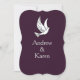 Cette couleur prune profonde avec le texte argenté est tout simplement magnifique, j'aime cette couleur pour les mariages d'automne et/ou d'hiver et je pense que la combinaison de l'argent est vraiment sympa. La colombe a toujours été un joli symbole d'harmonie et d'amour, donc je pense que l'incorporer dans votre thème mariage est une excellente idée et cette invitation le fait magnifiquement.