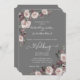 Floral d'aquarelle de prune mauve sur Arrière - plan gris charbon, Faire-part de mariage. Ce Floral rose moderne est simple mais élégant et conviendra parfaitement à une mariage élégante. Le design neutre présente une carte minimaliste décorée d'un spray romantique de roses d'aquarelle.