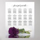 Ce tableau de sièges mariage présente un beau rose couleur prune ou aubergine réfléchissant dans l'eau avec des vagues et des ondulations. Le titre dit "s'il vous plaît trouvez votre table" dans élégante calligraphie de script en dentelle. Il y a de la place pour les noms du couple et la date du mariage. Ce tableau a des affectations de table pour 150 invités à 15 tables - 10 personnes par table.