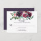 Fleurs d'aquarelle luxuriantes en violet, violet, rouge, rose, mauve et blanc avec verdure assortie. Le dos de la carte est un violet foncé. Le modèle est facile à personnaliser - il y a des éléments de script de calligraphie manuscrit dans le violet foncé et un mélange de police moderne. Faire-part de mariage correspondant disponible.