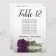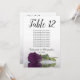 Ces belles cartes de numéro de table faciliteront la recherche de sièges à votre réception de mariage. Elles présentent un design simple mais élégant avec des lettres de calligraphie script et un seul rose de couleur prune violet ou aubergine à long tige sur son côté réfléchissant dans l'eau. La carte comprend un tableau de sièges avec 10 noms. Il y a aussi de la place pour les noms du couple et la date du mariage. Cette carte est disponible dans une variété de tailles et est plus grande que nos cartes de numéro de table standard.