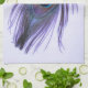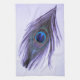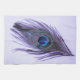 Une plume de paon avec les tons pourpres mis en évidence sur un arrière - plan mauve-clair.