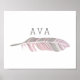 Un trio de plumes stylisées dans des tons terreux de violet, lavande, lilas, ardoise et moka, personnalisé avec le nom de votre enfant ou le texte de votre choix.