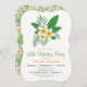 Été tropical Hawaiian Luau thème de fête d'anniversaire invitation. L'Invitation présente des fleurs de plumeria orange et blanche.