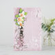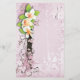 Plumeria vintage/frangipani et lierre sur papier à lettres rose, avec de belles fleurs de plumeria blanche et orange et lierre sur arrière - plan grunge en difficulté rose. Rose, blanc, vert, orange.