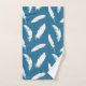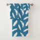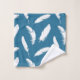 Serviette en plumes blanches imprimé sur denim moyen bleu - dessin en média mixte de plumes blanches, flottant sur un arrière - plan de couleur contrastée