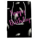 Plumes d'anniversaire sur sac cadeau moyen noir