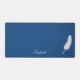Elégante plume blanche et calligraphie sur le bleu du lac. Texte prêt à être personnalisé. Design minimaliste élégant !
