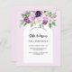 Un arrière - plan rose vif et un cadre en arc blanc. Décoré de violet, de violet et de rose, de fleurs et de verdure. Personnalisez et ajoutez votre nom et les détails de votre fête. 1 feuille = 1 invite imprimé bord à bord.