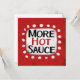 "More Hot Sauce" est un design de texte mignon en rouge avec du texte en noir et rouge, avec une forme d'accent blanc et des points blancs à texture blanche.