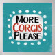 "More Corgis Please" est un joli design de texte en bleu avec du texte en noir et rouge, avec une forme d'accent blanc et des points blancs à texture blanche.