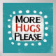 "More Hugs Please" est un design de texte amusant avec une forme d'accent blanc entourée de points blancs texturés.