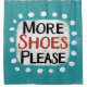 "Plus de chaussures s'il vous plaît" est un design de texte amusant avec une forme d'accent blanc entourée de points blancs texturés.
