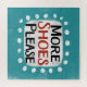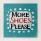 "Plus de chaussures s'il vous plaît" est un design de texte amusant avec une forme d'accent blanc entourée de points blancs texturés.