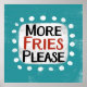 "More Fries Please" est un design de texte amusant avec une forme d'accent blanc entourée de points blancs texturés.