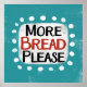 "More Bread Please" est un design de texte amusant avec une forme d'accent blanc entourée de points blancs texturés.