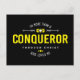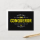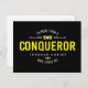 "Plus qu'un conquérant" badge de design de typographie chrétienne. Tapez dans le style emblème avec des lettres noires, "Je suis plus qu'un conquérant à travers le Christ qui m'aimait." La référence de l'écriture est de Romains 8:37. (La couleur arrière - plan peut changer).