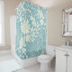 rideau de douche moderne avec un beau motif à fleur crème & feuilles sur un arrière - plan bleu.