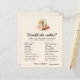 Ajoutez un peu de rire à votre célébration avec ce Vouloir Elle Plaise - Nouveau Chapitre Commence le jeu de Fête des mariées! Inspiré par le prochain grand chapitre de la mariée, ce jeu amusant et interactif invitation les invités à deviner ce que les futurs mariés choisiraient : du café ou du vin aux jours de plage ou de cinéma. Avec des éléments de design élégants et sur le thème du livre et des invites personnalisables, il complète parfaitement tout thème de douche nuptiale littéraire ou "nouveau chapitre". Facile à imprimer ou à afficher, c’est un excellent moyen de briser la glace et de faire participer tous les participants à la célébration. Un ajout charmant à votre gamme de jeux de douche nuptiale!