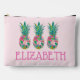 Ce sac de sacs à accessoires cosmétiques personnalisées est muni de mignons ananas tropicaux rose et vert de chaque côté. Personnalisez l'avant et l'arrière avec votre choix de nom et de texte spécial. Amusez-vous pour les week-ends de filles, les réunions, les demoiselles d'honneur et bien plus encore.