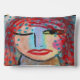 Ma peinture abstraite colorée d'une femme aux cheveux rouges fait de cette pochette d'accessoires pratique une oeuvre d'art funky à porter!