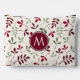 Design motif de surface illustratif de silhouettes de feuilles assorties en rouge et vert sur un arrière - plan couleur crème avec lettre encerclée/avant centre initial pour personnaliser.
