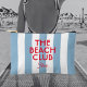 Le sac d'accessoires personnalisé parfait pour vous les essentiels de plage... rayures de cabane bleu avec la coutume française rouge "The Beach Club" lettrage. Personnalisez avec la destination plage. Idéal pour un voyage de groupe sur la plage, une soirée de bachelorette à thème club de plage ou comme souvenir pour un voyage passé sur la plage. Accessoires correspondants disponibles dans The Beach Club French Red Blue Cabana Stripe Collection.