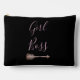 Un petit sac d'accessoire noir avec une flèche rose en bas où au-dessus, vous pouvez le personnaliser avec un logo, un nom ou une lettre ou simplement garder comme il est avec la phrase "Girl Boss". Thème girly moderne.
