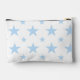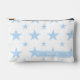 A pretty and elegant blue stars pouch. This modern, feminine cosmetic bag doubles as a pastel pencil case, perfect as a cute toiletry or back-to-school makeup bag for her, girls, or a constellation-themed gift.