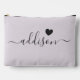 Cet élégant sac à accessoires est orné d'un élégant arrière - plan gris lavande orné d'une police de caractères moderne affichant un nom personnalisé et un design de coeur charmant. La couleur douce, féminine et la typographie sophistiquée en font un accessoire parfait pour les demoiselles d'honneur ou toute personne qui apprécie les designs chic et tendance. Son utilisation polyvalente et son toucher personnalisé ajoutent un élément spécial à cette belle pièce.