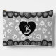 Ce mignon sac cosmétique est recouvert d’argent tourbillonnant dessiné à la main et de coeurs pointillés noirs et blancs, c’est le sac parfait pour votre maquillage, stylos ou petits essentiels. Vous pouvez le personnaliser avec votre droit initial au centre de ce grand coeur audacieux ou simplement le laisser vide. S'intègre bien dans votre fourre-tout ou le montre sur votre vanité. C'est une façon amusante de porter un petit morceau de vous où que vous alliez.