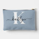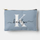 Cette pochette d'accessoires bleu poussiéreux simple et élégante avec votre prénom dans une police de script tendance en noir et votre première initiale dans une police casquette moderne en blanc est parfaite pour vous. C'est design, tendance et pourtant très classique. Il sera fabuleux pour l'école, la salle de sport, le travail, votre voiture - fera garder vos bijoux, maquillage ou articles de toilette dans un seul endroit lorsque vous êtes loin de chez vous.