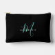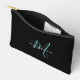 Pochette À Accessoires Élégant Noir Turquoise Script Monogramme moderne