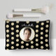 Élevez votre style avec cette élégante pochette d'accessoires noirs, avec un motif chic faux cercles d'or qui s'opère contre l'arrière - plan noir simple. Personnalisez le front avec votre propre photo et nom en écriture blanche mignonne et manuscrite, ce qui en fait un accessoire vraiment unique. Parfait pour l'essentiel cosmétique, le maquillage ou comme incontournable de la rentrée, ce sac chic garde vos objets à portée de main tout en ajoutant une touche de style et de personnalité à toute tenue. Élégant, pratique et attrayant, il est le compagnon idéal pour des aventures quotidiennes ou des occasions spéciales. Disponible dans une variété de couleurs pour correspondre à votre style unique!
