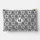 Decorative damask in a vintage influenced pattern, in black detail on a background color of your choice, with letter center to personalize on both sides.