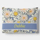 Fleurs blanches sur bleu, ajoutez votre nom.
